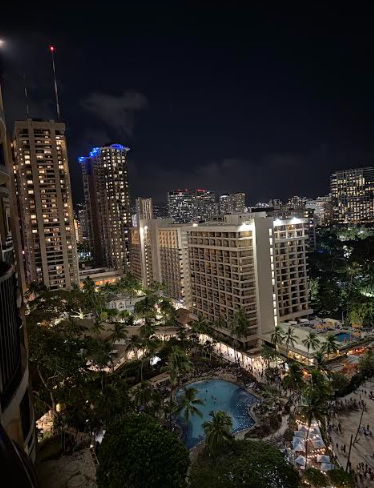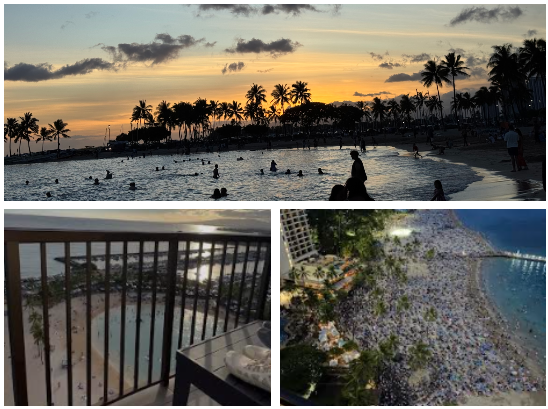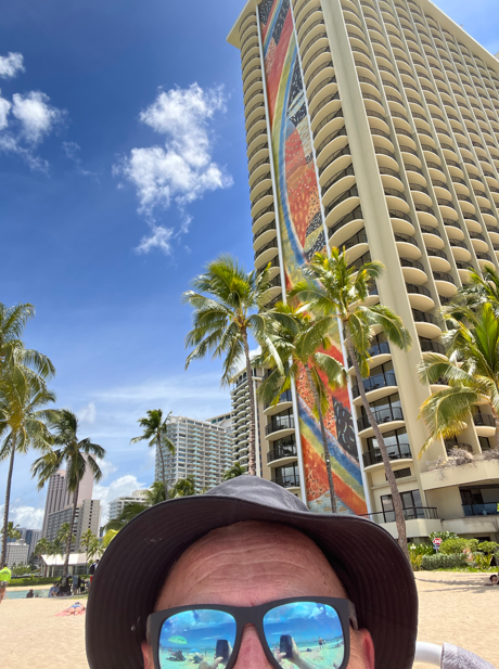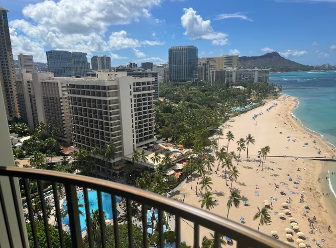 Our home for the week? The iconic Hilton Hawaiian Village — specifically, the Rainbow Tower, perched directly on Waikiki Beach with a sweeping view of Diamond Head. We booked a corner room on the 20th floor with not one, but two terraces. The elevator had no buttons inside (you choose your floor beforehand), and it zipped up faster than a ukulele solo.