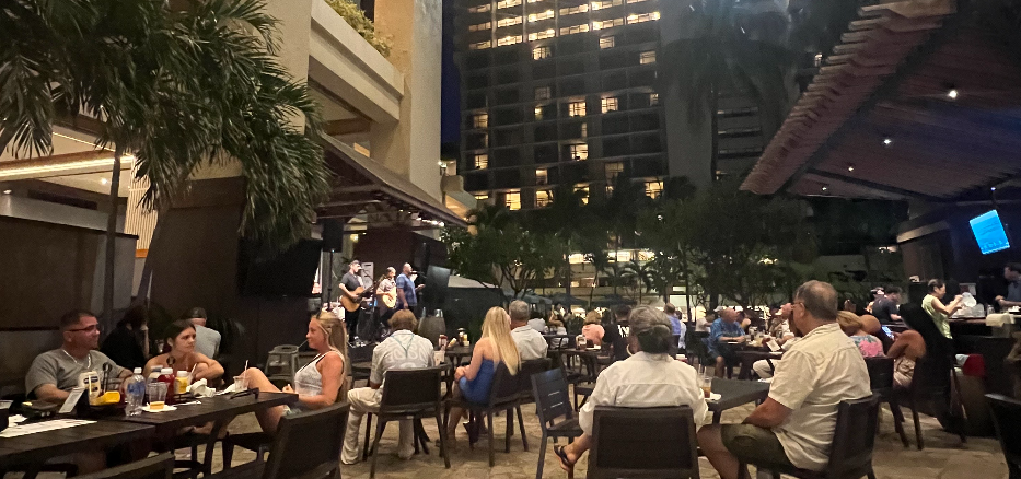 After lunch, we wandered the resort’s gardens, waterfalls, koi ponds, and shops. The Hilton Hawaiian Village is practically a mini theme park — with nightly live music, multiple pools, and enough dining options to make your head spin.