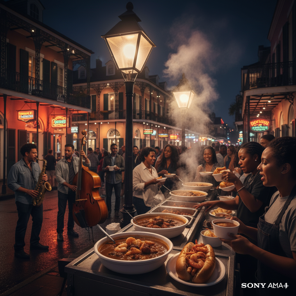 - New Orleans: Start with beignets at Café du Monde, then dive into gumbo, jambalaya, and crawfish étouffée. Don’t miss a po’boy sandwich stuffed with fried shrimp or roast beef dripping with gravy.
