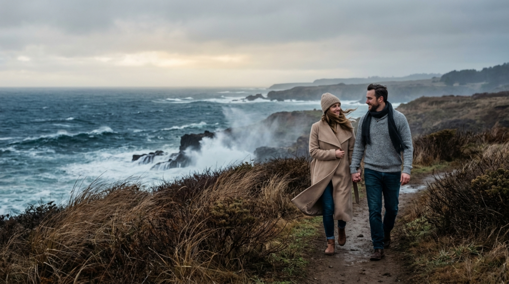 Travel experts often note that couples bond more deeply when navigating unique conditions together — snow hikes, coastal storms, desert sunsets.